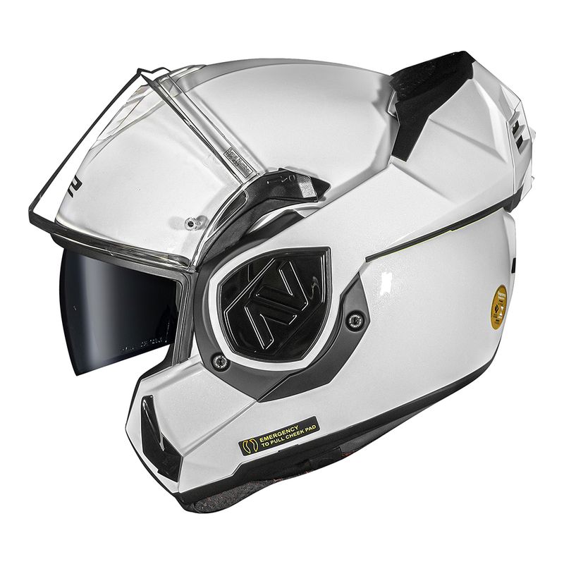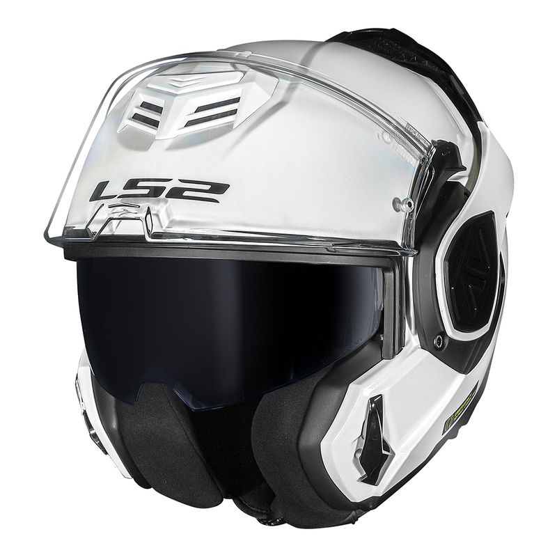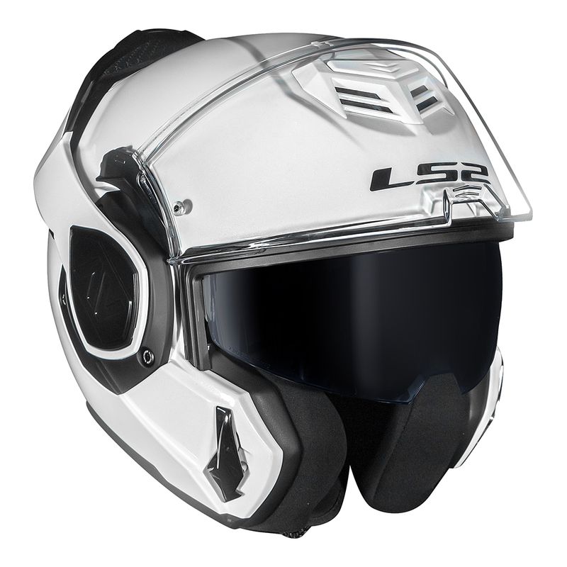 O LS2 FF906 ADVANT vem acompanhado de Pinlock® 120 Max Vision. O LS2 FF906 ADVANT é um capacete articulado e muito versátil, com queixeira giratória 180 graus para excelente proteção, conforto e comodidade. O casco é construído em KPA para maior leveza e segurança, contanto com dupla homologação ECE 22. 06. Perfeito para qualquer tipo de pilotagem e para todas as condições climáticas. Viseira anti-risco com amplo campo de visão preparada para uso de Pinlock® e conta com viseira solar rebatível. CARACTERÍSTICAS: • Casco em KPA, possui boa capacidade de absorção de impactos, conforme as normas mundiais de segurança; • Peso: 1650g (+-50g); • Dois tamanhos de casco / XS-L e XL-3XL; • Dupla homologação ECE 22.06 (Aberto e Fechado); • Sistema de liberação de emergência; • Fecho micrométrico em metal; • EPS canaletado de múltipla densidade; • Alça de queixo reforçada; • Múltiplas entradas e saídas de ar para maior conforto térmico; • Espuma cortada a laser e totalmente respirável; • Forração hipoalergênica, removível e lavável; • Neckroll com faixa reflexiva de segurança; • Preparado para intercomunicador (INTERCOM LS2/CARDO); • Viseira resistente a riscos e com proteção UV; • Conta com sistema rápido e eficiente de troca de viseira.