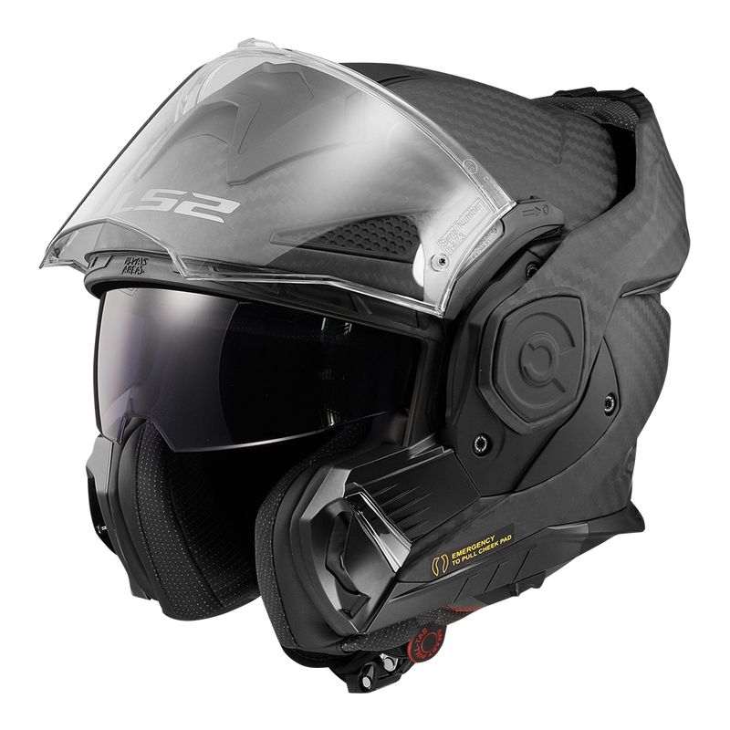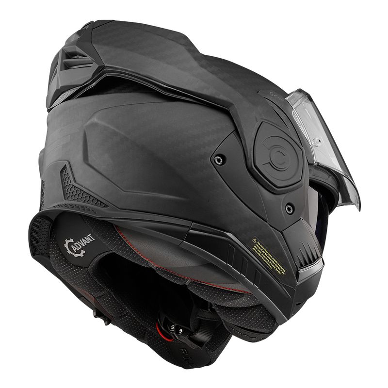 O LS2 FF901 ADVANT X CARBON vem acompanhado de uma mochila, viseira fumê e Pinlock® 120 Max Vision. A LS2 apresenta o FF901 ADVANT X CARBON, um capacete articulado totalmente novo e desenvolvido de acordo com a mais exigente norma ECE 22. 06, é o capacete articulado mais avançado do mercado. O ADVANT X CARBON não só cumpre as mais recentes regulamentações e padrões de segurança, como apresenta um design exclusivo e compacto, e conta com o mais moderno método de fabricação. O LS2 ADVANT X CARBON é o único capacete articulado totalmente em fibra de carbono do mercado, incluindo a queixeira com movimentação de 180 graus, oferecendo ainda mais leveza e segurança para o motociclista. Perfeito para qualquer tipo de pilotagem e para todas as condições climáticas. Viseira anti-risco, preparado para uso de Pinlock® e conta com viseira solar rebatível. CARACTERÍSTICAS: • Casco em fibra de carbono, possui alta capacidade de absorção de impactos, conforme as normas mundiais de segurança; • Peso:1550g (+-50g); • Dupla homologação ECE 22. 06 (Aberto e Fechado); • Sistema de liberação de emergência; • Fecho micrométrico em metal; • EPS canaletado de múltipla densidade; • Alça de queixo reforçada; • Múltiplas entradas e saídas de ar para maior conforto térmico; • Espuma cortada a laser e forração com tecido patenteado X-Static; • Forração hipoalergênica, removível e lavável; • Preparado para intercomunicador (INTERCOM LS2/CARDO); • Viseira resistente a riscos e com proteção UV; • Conta com sistema rápido e eficiente de troca de viseira.